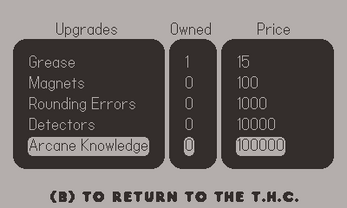 Tiny Hadron Collider is a simple idler for the PlayDate in which you work to generate as many muons as possible by manually cranking the particle accelerator as well as buying automated upgrades.